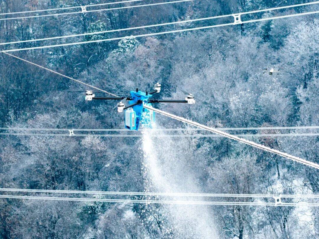 在四川凉山,除冰机器人由大载重无人机精准投送至120米高空,每小时可清理2千米长线路上的覆冰;