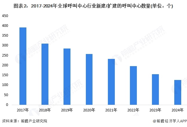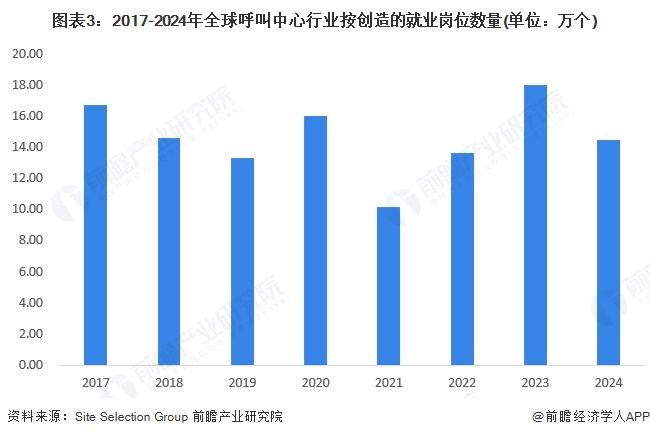 注:此处为SITE SELECTION GROUP统计其确定的全球新建/扩建的呼叫中心项目所创造的岗位数量。2024年数据为初步测算