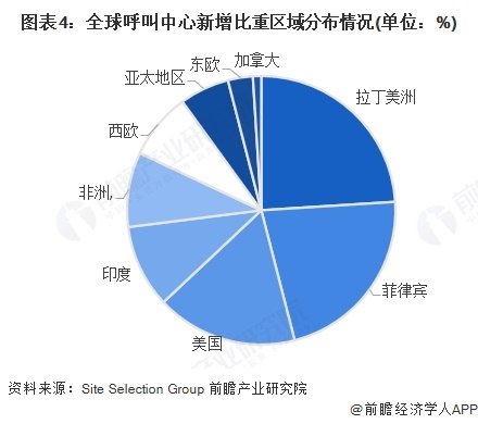 Site Selection Group数据显示,近年来,呼叫中心的选址继续向低成本的近岸和离岸地区迁移;全球新增的呼叫中心主要集中在拉丁美洲,占比24%,其次是菲律宾,占比22%,美国占比17%,印度占比10%,非洲占比9%,西欧占比8%,亚太地区占比6%。